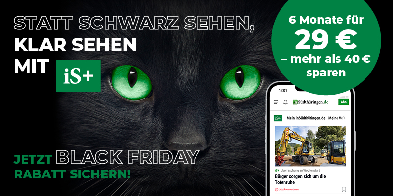 Mit unserem Black-Friday-Deal lesen Sie alle iS+ Artikel auf insüdthüringen.de für 6 Monate zum Aktionspreis.